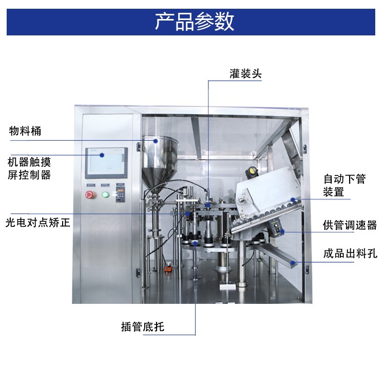 C、該機由全自動操作系統(tǒng)完成供管、洗管、識標(biāo)、灌裝、熱溶、封尾、打碼、修整、出成品全過程。