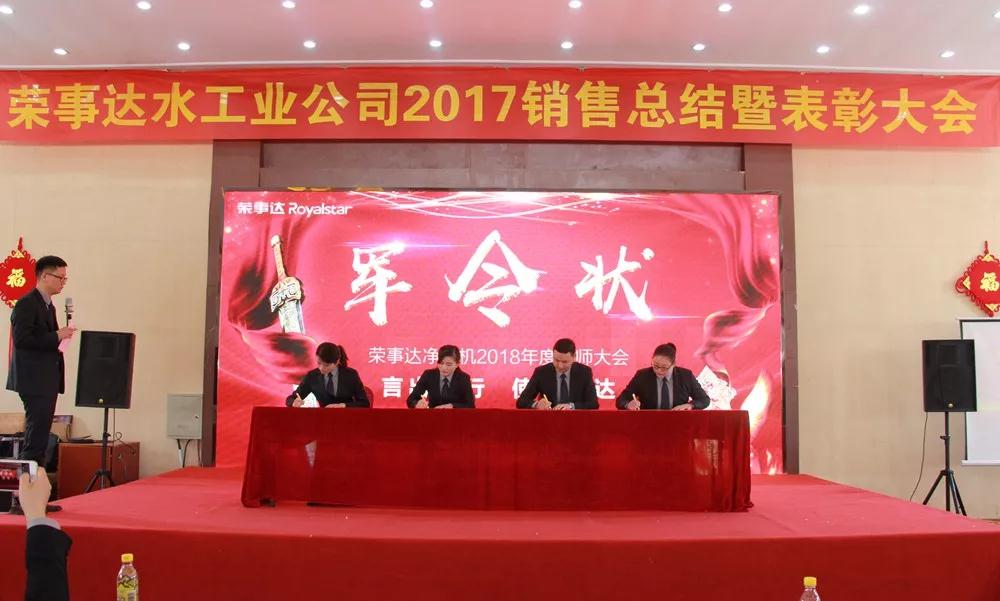 大會開場,榮事達水工業公司銷售精英起立合唱《歌唱祖國》,唱響健康中國夢,歌唱屬于自己的凱歌,洪亮的歌聲拉開了“榮事達水工業公司2017銷售總結暨表彰大會”帷幕。