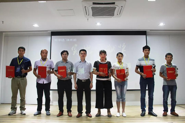 在新品發(fā)布環(huán)節(jié),王總隆重介紹了榮事達(dá)數(shù)年磨一劍,研發(fā)出的全屋智慧凈水生態(tài)系統(tǒng),這是榮事達(dá)水工業(yè)公司科研實(shí)力的一次大升級(jí),是榮事達(dá)水工業(yè)公司國(guó)家級(jí)凈水實(shí)驗(yàn)室、業(yè)內(nèi)頂尖設(shè)計(jì)人才精心研發(fā)的成果,是對(duì)榮事達(dá)65周年的獻(xiàn)禮和向市場(chǎng)交出的答卷。榮事達(dá)全屋智慧凈水生態(tài)系統(tǒng)包括智能前置過(guò)濾器、中央凈水機(jī)、中央軟水機(jī)、大通量反滲透凈水機(jī)和智能管線機(jī)等一整套的新品設(shè)備,凝聚了十二大核心技術(shù),以及“防爆科技”、“集成水路”、“大通量”、“小體積”等特點(diǎn),提高安全性,增加人性化,充分符合城市家庭對(duì)全屋凈水的需求,受到廣大客戶的關(guān)注。其中600G智能反滲透凈水機(jī),在不久前榮獲有凈水行業(yè)“奧斯卡”之稱的 “泰利斯”卓越產(chǎn)品獎(jiǎng)。