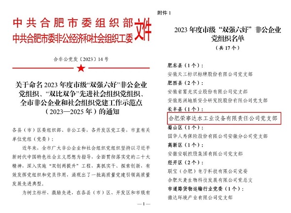 此次榮獲市級(jí)“雙強(qiáng)六好”非公企業(yè)黨組織稱號(hào)是對(duì)我司黨支部工作的肯定,我司將珍惜這份榮譽(yù),持續(xù)加強(qiáng)黨建工作,為非公黨建工作樹立典范。2024年,榮事達(dá)水工業(yè)黨支部將深入學(xué)習(xí)貫徹習(xí)近平新時(shí)代中國(guó)特色社會(huì)主義思想,始終堅(jiān)持以黨建引領(lǐng)“雙強(qiáng)六好”為目標(biāo),再接再厲,切實(shí)抓好公司黨組織的全面建設(shè)和提升,在非公企業(yè)黨組織建設(shè)中發(fā)揮排頭兵作用,把公司的黨建工作抓實(shí)、抓好、抓出成效,為社會(huì)發(fā)展做出更大貢獻(xiàn)。