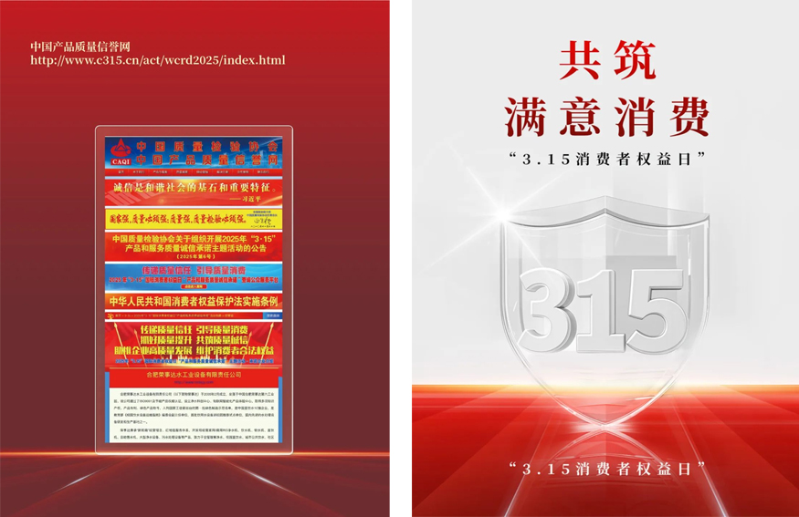 在由中國質量檢驗協會主辦的2025年“3.15”產品和服務質量誠信承諾的主題活動中,榮事達水工業公司憑借卓越的產品品質及良好的社會形象,獲得協會以及專家的一致認可,榮膺“全國行業質量領先品牌” “全國產品和服務質量誠信承諾企業” “全國消費者質量信譽保障產品” “全國質量檢驗穩定合格產品”多項榮譽,并在中國質量網、中國經濟網、中國產品質量信譽網等多家媒體上集中展示和公告。