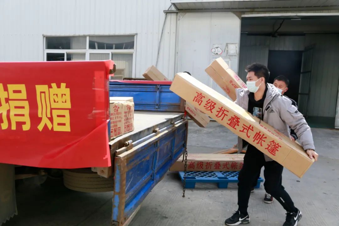 榮事達水工業集團在得知這一消息后,第一時間聯合黨支部來到長豐縣雙鳳開發區鳳巢社區黨群服務中心,為防控一線人員送去帳篷、方便面、飲用水等生活所需物資。