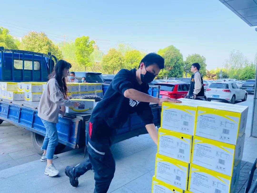 4月8日抗疫物資第一時間送達合肥蜀山區創新產業園網易安徽進行統籌安排。