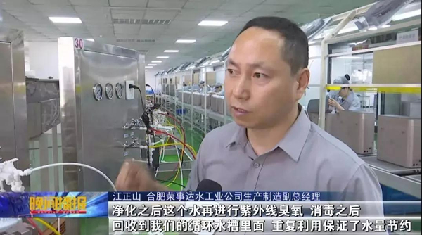 511日—517日為第二十八屆全國城市節(jié)約用水宣傳周,為引導(dǎo)廣大市民養(yǎng)成良好的節(jié)水習(xí)慣,同時(shí)推動節(jié)水技術(shù)在企事業(yè)單位發(fā)展中的普及,合肥新聞?lì)l道開展“全國城市節(jié)約用水宣傳周”系列報(bào)道。516日晚21時(shí)30分,合肥新聞?lì)l道《晚間播報(bào)》節(jié)目播出新聞《循環(huán)利用“節(jié)水器”  助力綠色環(huán)?!?,就校園直飲水節(jié)水建設(shè)和企業(yè)綠色生產(chǎn)做了專題報(bào)道,并走進(jìn)本土知名企業(yè)合肥榮事達(dá)水工業(yè)公司,見證了領(lǐng)先的凈水及節(jié)水技術(shù)。