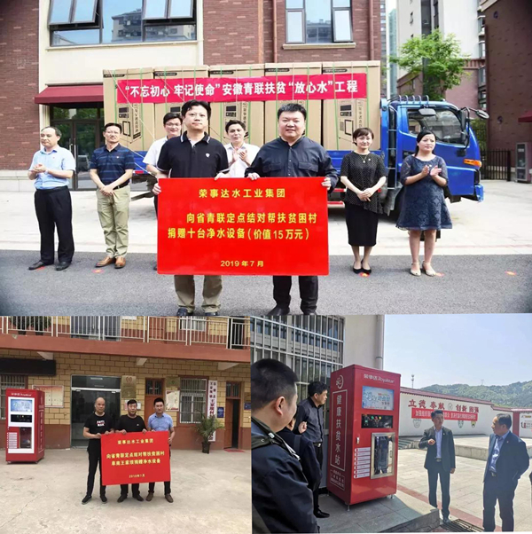 此外,為解決部分貧困地區“因水致病 因病致貧”的難題,榮事達積極響應國家“精準扶貧”號召,責任上肩,擔當作為,大力發展健康扶貧事業。前不久,榮事達攜手團省委、省青聯啟動“青力扶貧 聯創夢想”健康扶貧“放心水”工程,榮事達向安徽地區貧困村捐贈凈水設備,建立健康扶貧水站,讓村民們喝上健康水。建立“健康扶貧水站”是榮事達參與建設貧困地區飲水健康保障體系的重要措施,在為村民們提供干凈無污染的飲用水環境的同時,有效防止“病從口入”,實現健康脫貧。目前榮事達已在河北邯鄲、金寨縣漆店村、阜南縣王家壩村等多地建立扶貧水站,成功解決當地居民飲水安全問題。