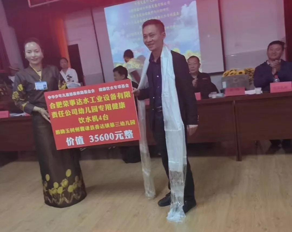•        近日,榮事達水工業攜手中華少年兒童慈善救助基金會發起成立“健康飲水專項基金”,并啟動“健康飲水惠民工程”項目。專項基金成立后的首次幫扶活動在青海玉樹開展,榮事達向玉樹州幼兒園捐贈了多臺凈水設備,為孩子們送去健康直飲水。