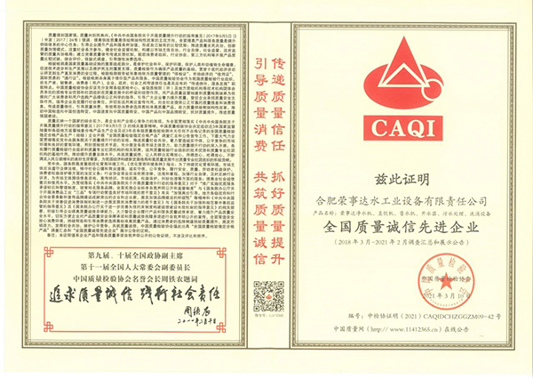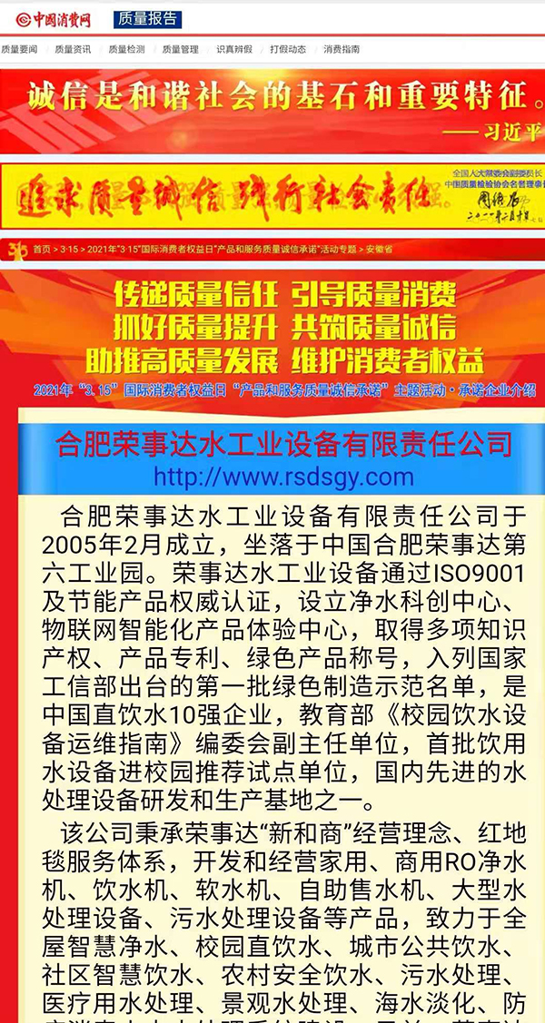 • 誠信315|熱烈祝賀榮事達榮獲“全國產品和服務質量誠信示范企業”“全國質量信得過產品”“全國凈水行業質量領先品牌”等多項榮譽