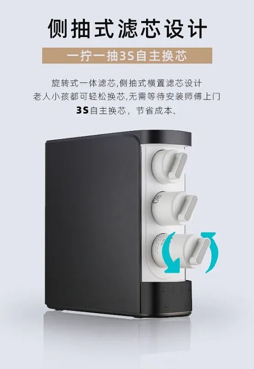 科技讓生活更美好。榮事達(dá)智能反滲透純水機(jī)利用科技之力實(shí)現(xiàn)產(chǎn)品創(chuàng)新,讓更多人都能享受科技帶來(lái)的美好生活,側(cè)抽式濾芯設(shè)計(jì),一擰一抽3秒自主換芯,真正體現(xiàn)了將細(xì)節(jié)做到極致。