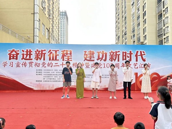 當(dāng)日正值中共安徽長豐(雙鳳)經(jīng)開區(qū)工作委員會(huì)、中共安徽(長豐)雙鳳經(jīng)濟(jì)開發(fā)區(qū)鳳巢社區(qū)總支部委員會(huì)舉辦學(xué)習(xí)宣傳貫徹黨的二十大精神暨建黨102周年文藝匯演,榮事達(dá)水工業(yè)公司黨支部受邀參加了此次活動(dòng)。