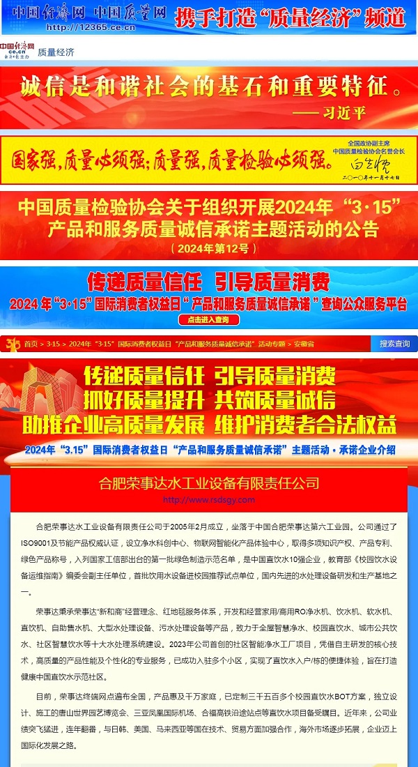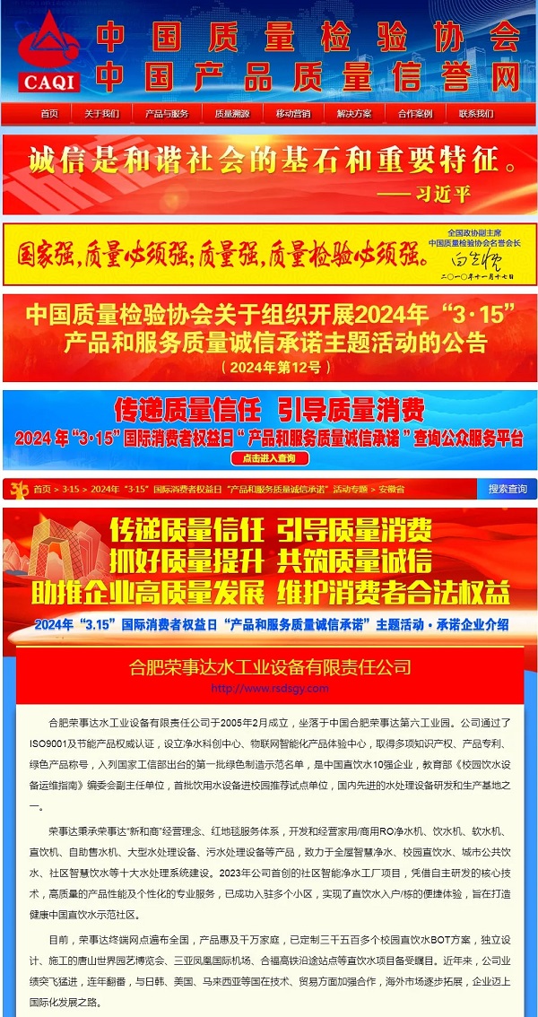 - 熱烈祝賀榮事達(dá)在2024年全國“3·15”活動中斬獲“全國凈水行業(yè)質(zhì)量領(lǐng)先品牌”、“全國產(chǎn)品和服務(wù)質(zhì)量誠信示范企業(yè)”等七項殊榮