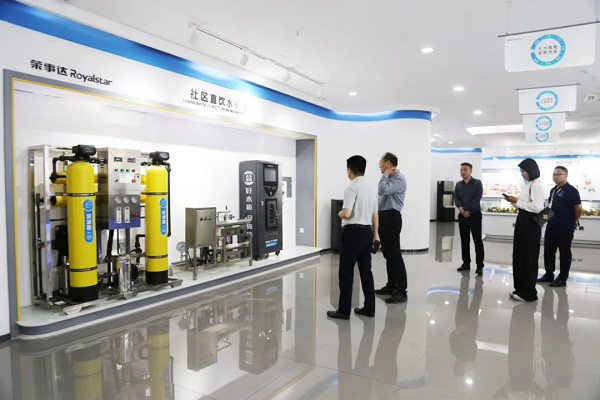 沉浸式參觀,智能凈水工廠實力盡顯 領導一行參觀了榮事達智慧水世界展廳,聽取了集團的發展歷程以及令人矚目的成就,全面了解了社區智慧飲水系統、校園直飲水系統、全屋智慧凈水系統等榮事達十大水處理系統,領導們對公司的綜合實力給予了高度評價與認可。