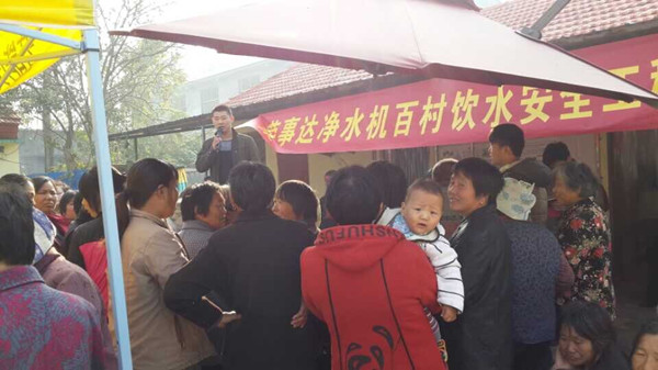 此次活動受到豐縣廣大村民的熱烈歡迎,見到了產品功效,嘗到甘甜的純凈水,許多村民現場即預訂了產品。短短十多天,當地代理商已為100多戶村民家庭安裝凈水機,接上了安全水。