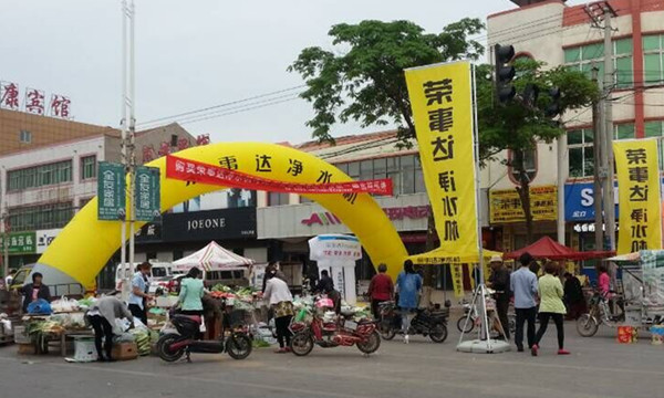 開業(yè)當(dāng)天,店門口擺放巨大的氣拱門,布滿道旗,再加上榮事達凈水機服務(wù)車的來回宣傳,吸引了眾多消費者駐足并進店咨詢,店里專業(yè)導(dǎo)購人員為前來咨詢的消費者做了詳細的講解和介紹。為了讓更多的人了解凈水的重要性,代理商更是當(dāng)場演示凈水機的工作過程,普及凈水知識。