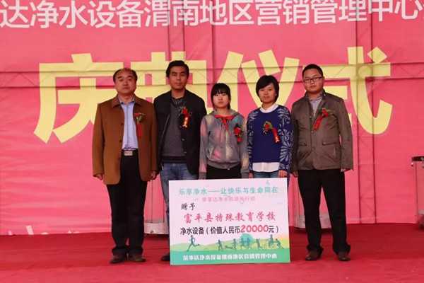 2015年伊始,榮事達(dá)水工業(yè)公司與安徽省青年志愿者協(xié)會(huì)共同發(fā)起了“樂(lè)享凈水——讓快樂(lè)與生命同在”助殘公益項(xiàng)目,活動(dòng)一經(jīng)發(fā)起就受到了各地代理商的積極響應(yīng),截止目前,累計(jì)向康復(fù)中心、特殊學(xué)校、助殘機(jī)構(gòu)等350多個(gè)單位捐贈(zèng)凈水設(shè)備2000多套,受惠人口超過(guò)50000人。除此之外,代理商們還主動(dòng)為社會(huì)其他人群提供幫助,遼寧遼陽(yáng)代理商就為當(dāng)?shù)丨h(huán)衛(wèi)工人設(shè)置榮事達(dá)飲水站,解決其工作期間的飲水問(wèn)題;江蘇大豐舉行了“關(guān)愛(ài)生命,凈享水源”百村助民活動(dòng),當(dāng)?shù)卮砩桃罁?jù)實(shí)際情況為各村鎮(zhèn)服務(wù)機(jī)構(gòu)安裝凈水機(jī),方便村民接水飲用。
