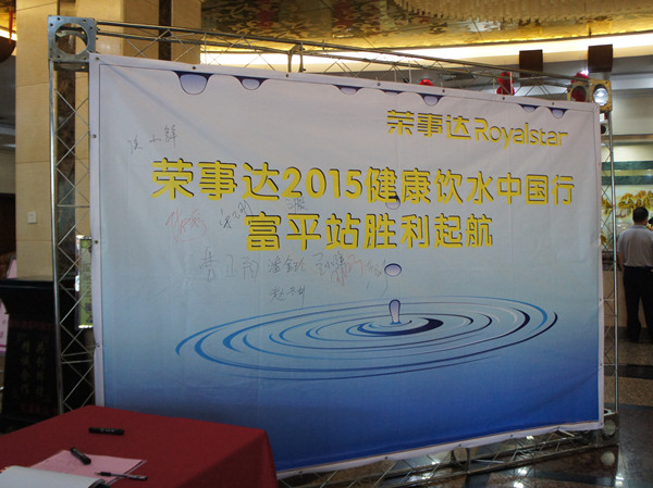 •     6月29日下午,榮事達水工業公司在陜西省渭南市富平縣富爾大酒店召開了以“榮事達2015健康飲水中國行”為主題的招商會,會議吸引了近百名意向客戶的參加,成功訂購凈水機千余臺,簽約總金額高達一百萬元。