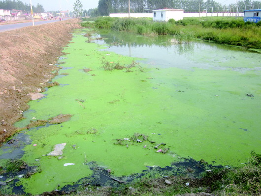 829日上午記者來到張先生所說的那條河流看到的卻是另一番模樣。整條河流幾乎被一層厚厚的綠藻覆蓋撥開綠藻是黑黑的河水散發(fā)著陣陣惡臭蚊蠅滿天飛。